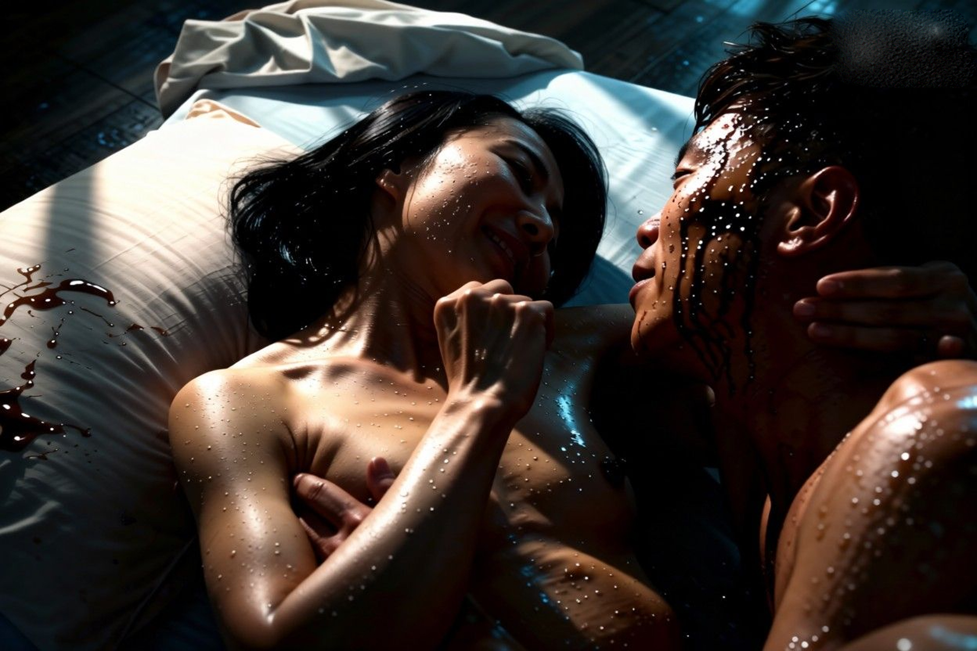 二人は、乱れたベッドの中で、互いの傷を確認し合いながら、長い時間を過ごした。 かつてのような清潔な愛も、信頼も、そこにはない。あるのは、互いの裏切りを鏡のように映し出し、その歪みに恍惚を感じる、崩壊した夫婦の成れの果てだ。