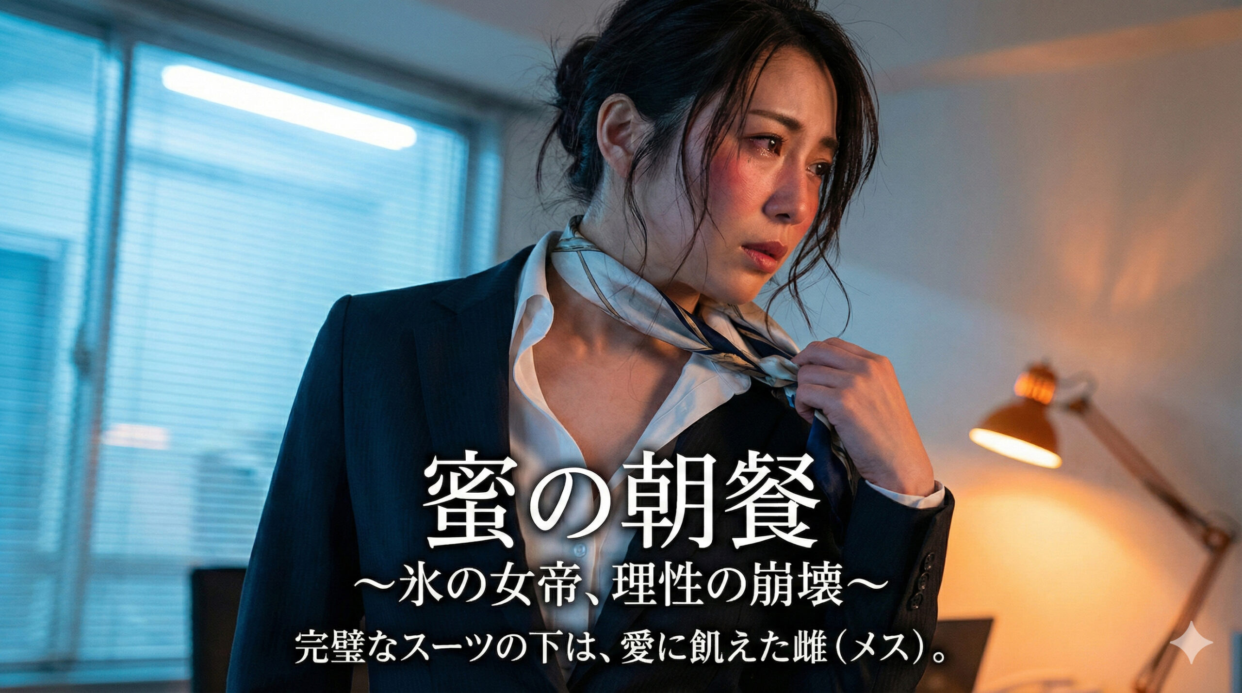 始業からわずか数分。 キーボードを叩く手を止め、彼女が吐き捨てた微かな喘ぎを、俺の耳は逃さなかった。 その声は、昼間の冷徹な響きとは無縁の、情事に疲れ果てた娼婦のように掠れ、熱を帯びている。タイトなブラウスの胸元が、浅い呼吸に合わせて艶かしく上下していた。
